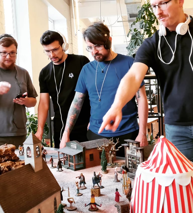 Žaidimą sudaro: interaktyvus miniatiūrų maketas, mobilieji įrenginiai, ausinės